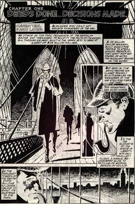"Alexander Risk" only saw 20 some pages printed. Tom Sutton actually did breakdowns for the second installment in blue pencils. I still have those pages somewhere, with, if I recall correctly, my penciled copy in the panels.