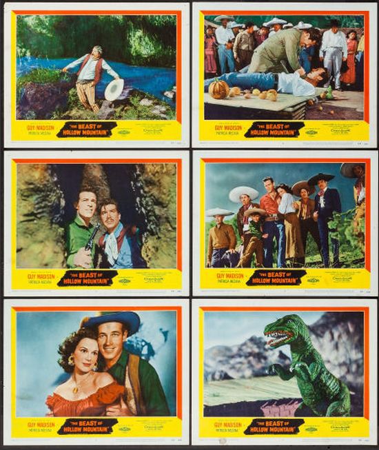 The dinosaur in The Beast of Hollow Mountain is not in Ray Harryhausen's class, nor is it in the class of Willis O'Brien, who had the initial idea for a dinosaur devouring cattle. But the star of the film is Guy Madison, who was Wild Bill Hickok on TV in the early 1950s, so fans of early television westerns don't have any kick about the human part.