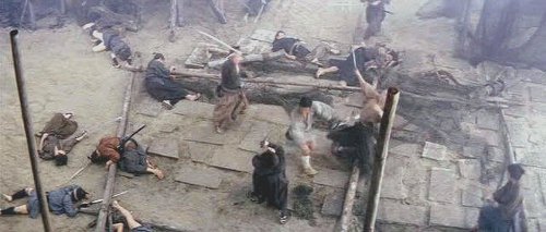 A long downshot establishing where all the combatants challenging Zatoichi lie when all was said and done.